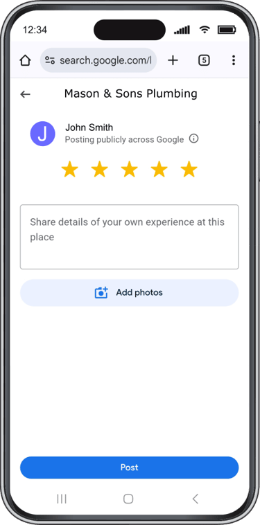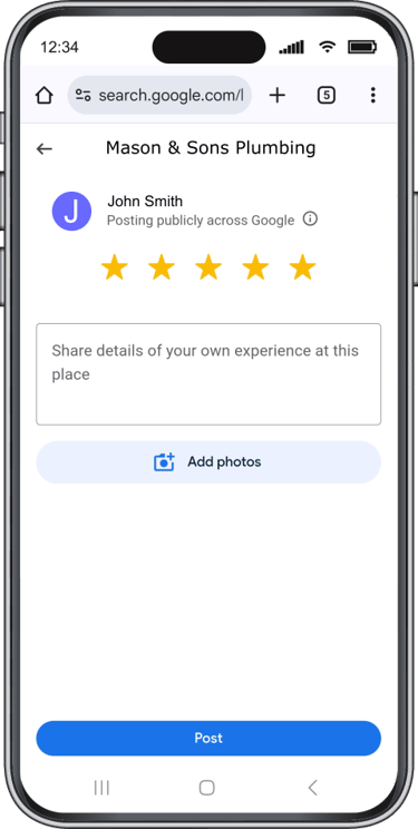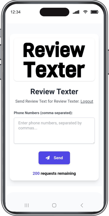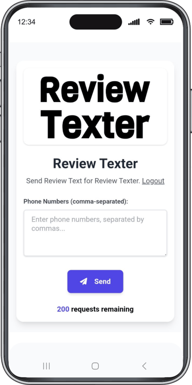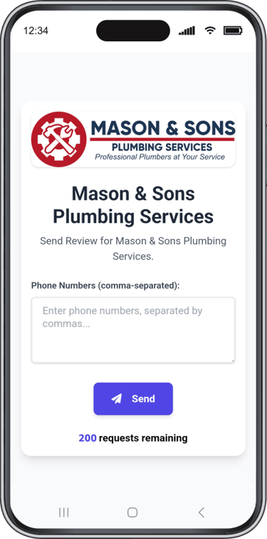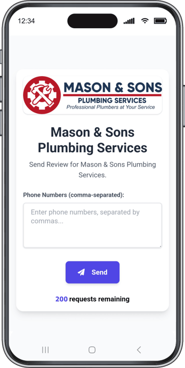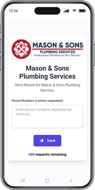 Ideal for all home service businesses such as plumbers, painters, mobile car detailers, etc... After completing a job, simply enter the customer’s phone number, and the app will automatically send a review request via text. If the customer doesn't respond, reminder texts are sent automatically