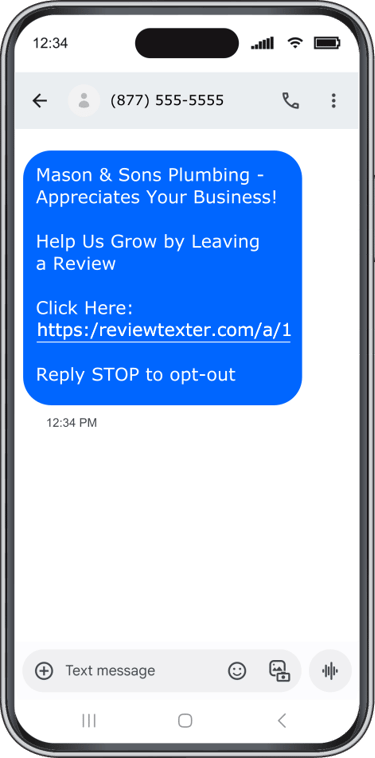 Customers receive a text message with your custom message and a clickable link to leave a review
